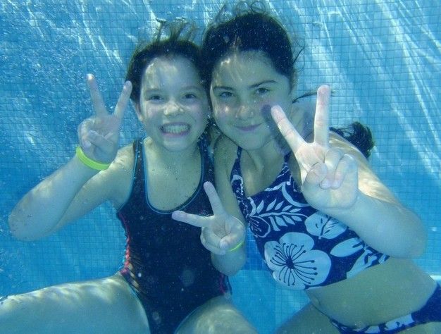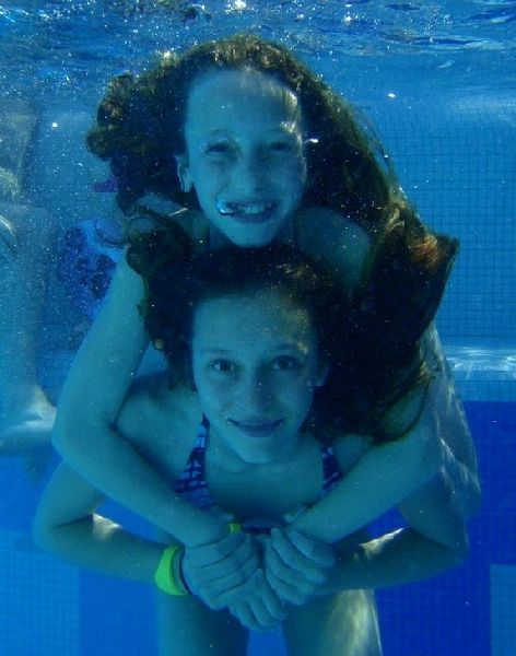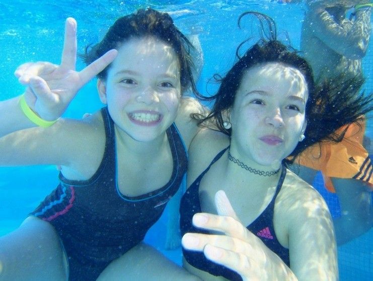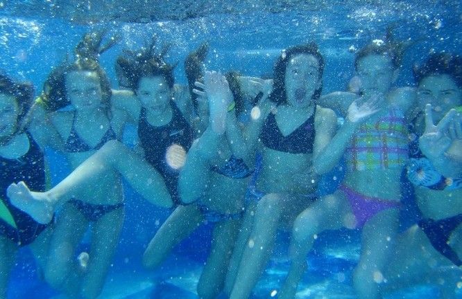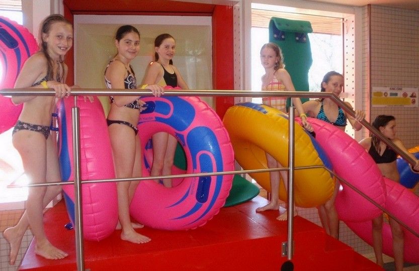 Die Lage der Turnhalle war ideal – mit Blick auf den Zürichsee und auf den Nachbarn: Alpamare. Ausnahmsweise waren einige Turnerinnen froh, dass die Pause zwischen dem Wettkampf und der Rangverkündigung so lange war. Es gab genug Zeit, ins Alpamare zu gehen! Auch die BegleiterInnen hatten Freude … im warmen Wasser und an der Sonne lässt sich die Zeit gut vertreiben …
