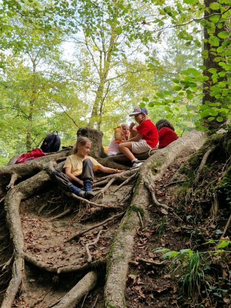 Während der Wanderung kam die Sonne zum Vorschein und als wir beim Bruderhaus ankamen, sahen wir gleich zwei grosse, imposante Wölfe. Weiter liefen wir zu einem Rastplatz, bei dem wir unser Gepäck deponieren konnten.