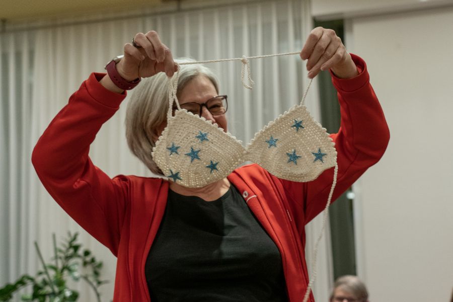 Abwechslungsreich, sei es mit Fakten aus ihrem langjährigen Einsatz für die Frauenriege, mit einer lustigen Geschichte, mit einem spannenden Quiz und sogar mit einem handgehäckelten Bikinioberteil wurden die Jubilarinnen verschieden durch den Vorstand geehrt.